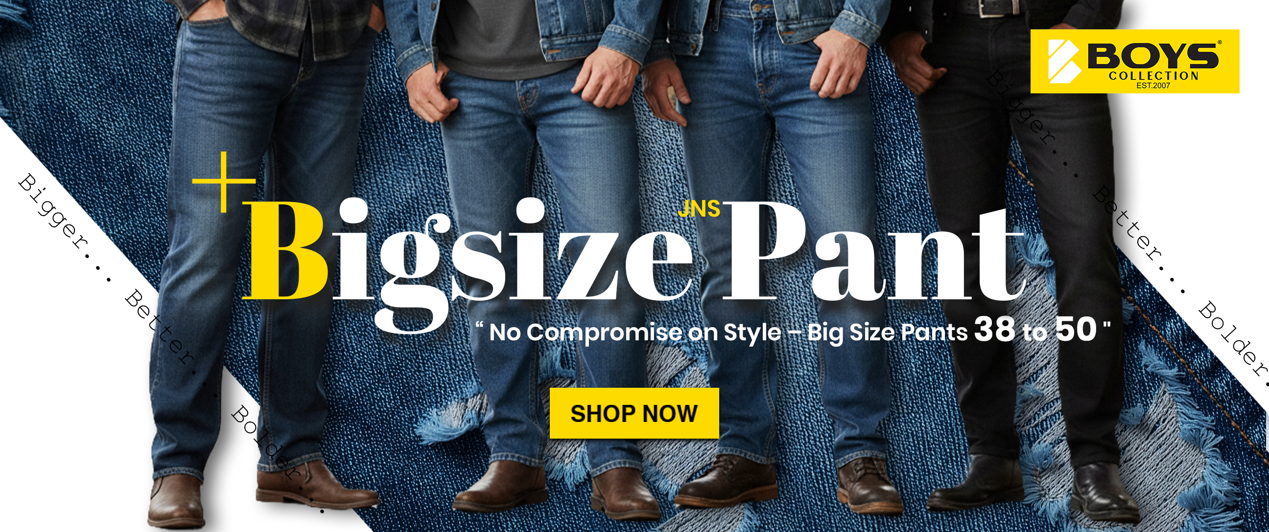 Fashion waits for no one, and neither should you. Our Big Size Pants (38”–50”) are in high demand, and stocks are limited. Don’t settle for uncomfortable fits or outdated styles. Shop online at BuyBoys.in or visit your nearest Boys Collection branch today.